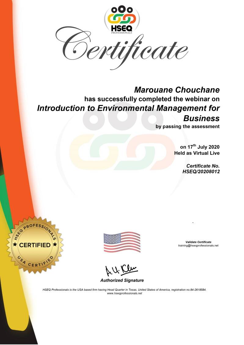 This academic foundation provided me with the core principles of industrial safety, chemistry, and environmental management that underpin my QHSE expertise.